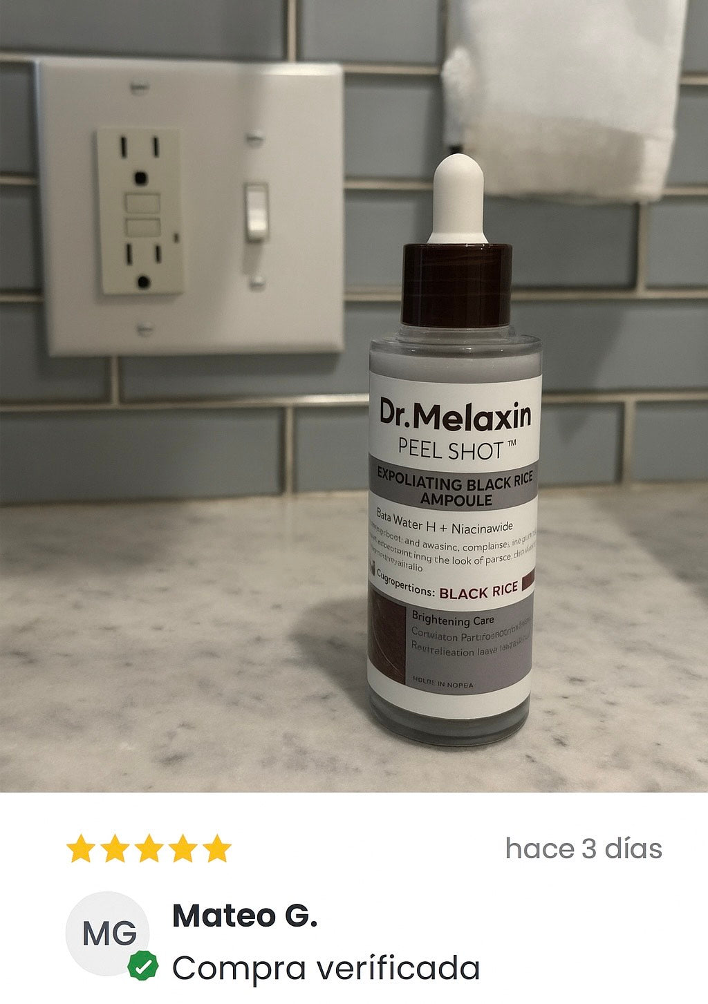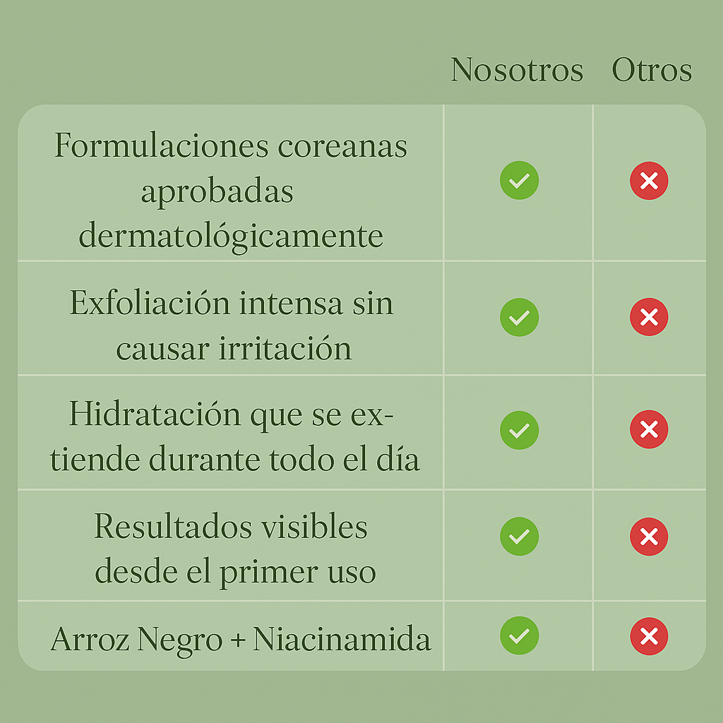 Nuestro Sérum utiliza activos premium como arroz negro y niacinamida, inspirados en fórmulas coreanas avanzadas que proporcionan una exfoliación eficaz y una hidratación prolongada.